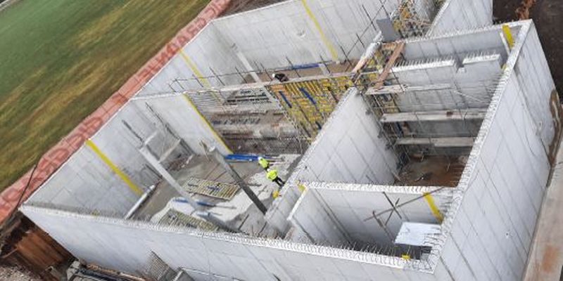 Upravna stavba – Objekt 1 – Zabetonirala se je temeljna plošča, stene vhodnega črpališča in temeljna plošča bazena greznic