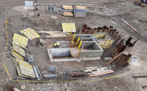Zabetonirala se je temeljna plošča, stene vhodega črpališča in temeljna plošča bazena greznic.