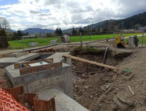 Prevalje P-3– Izvedeno je HDD podvrtavanje pod Mežo in uvlečena PE cev za tlačni vod. Vgrajen je betonski