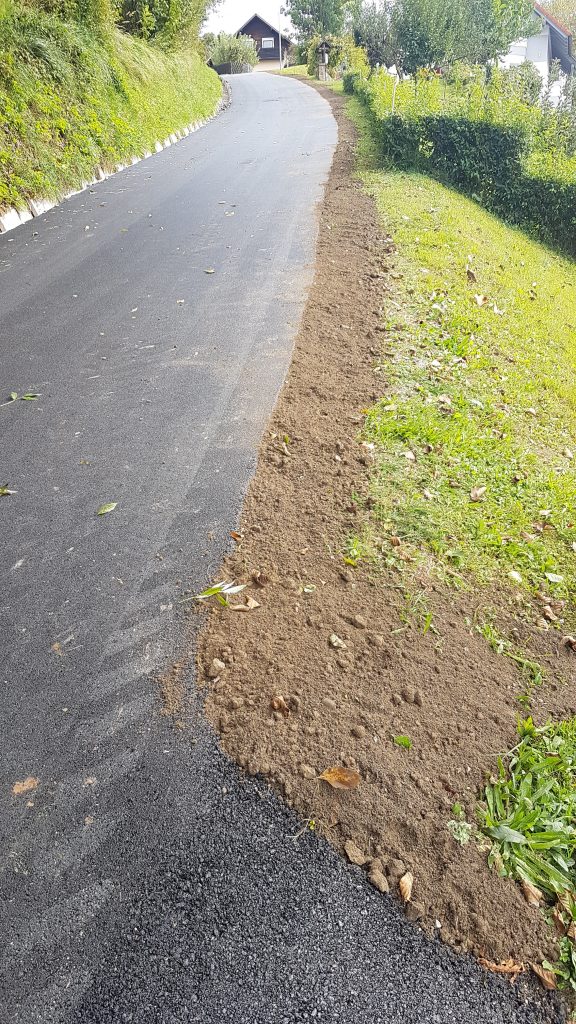 Izvedeni so 4 prekopi preko glavne ceste in prevezava obstoječe kanalizacije na novo. Izdelal se je en hišni priključek. Od jaška C14 do objekta R-2 se je položil grobi asfalt.